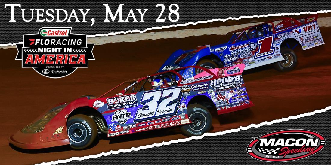 Tuesday, May 28 | Macon Speedway | Castrol FloRacing Night in America | Times: