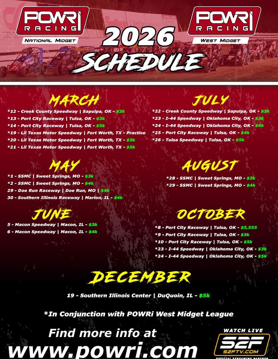 Events marked with an asterisk (*) will run in conjunction with the POWRi West Midget League, whose schedule will be released in the coming weeks.